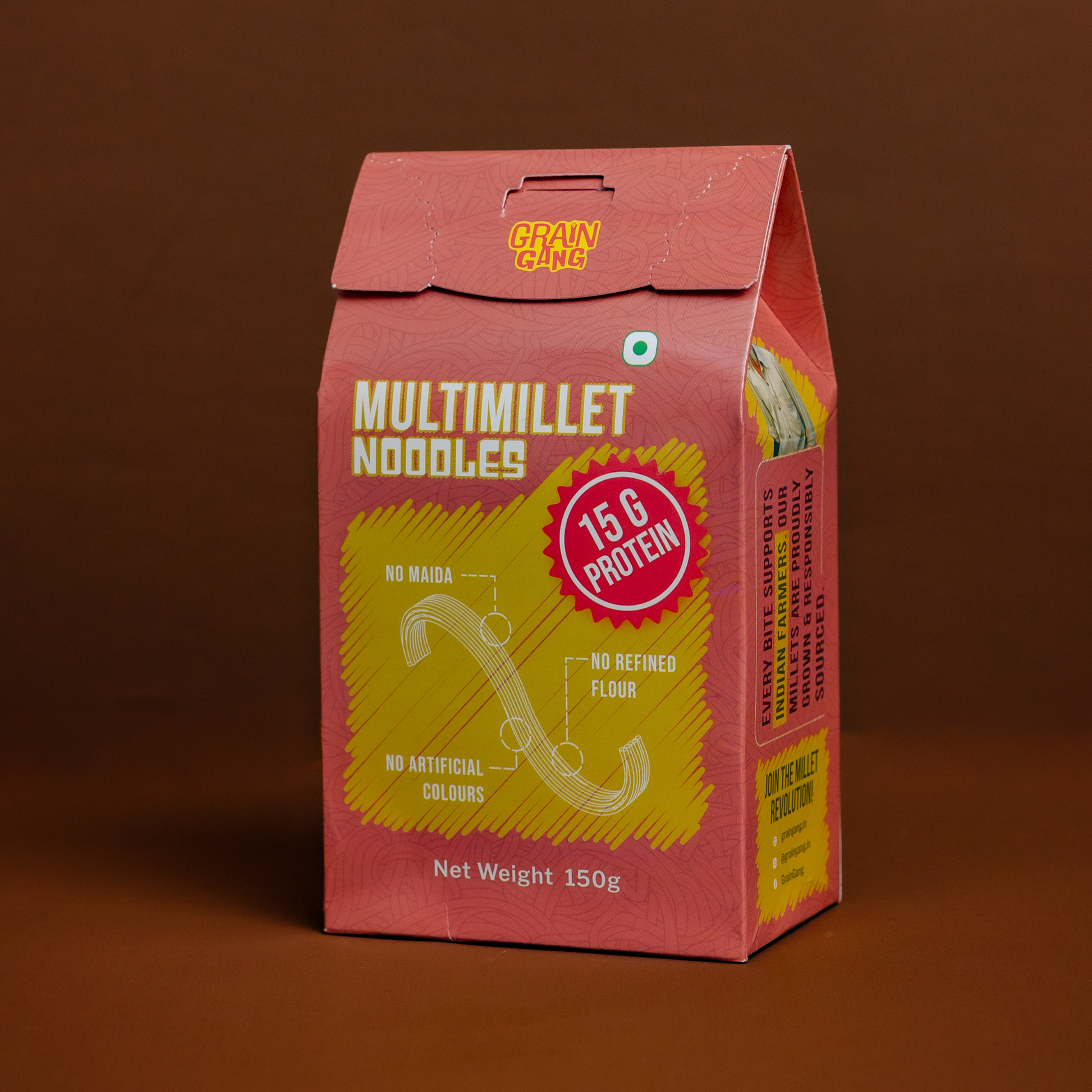 GrainGanG Multi-Millet Noodles are crafted from a wholesome blend of Jowar, Bajra, and Ragi, bringing you the rich taste of real millets with a powerful dose of nutrition.