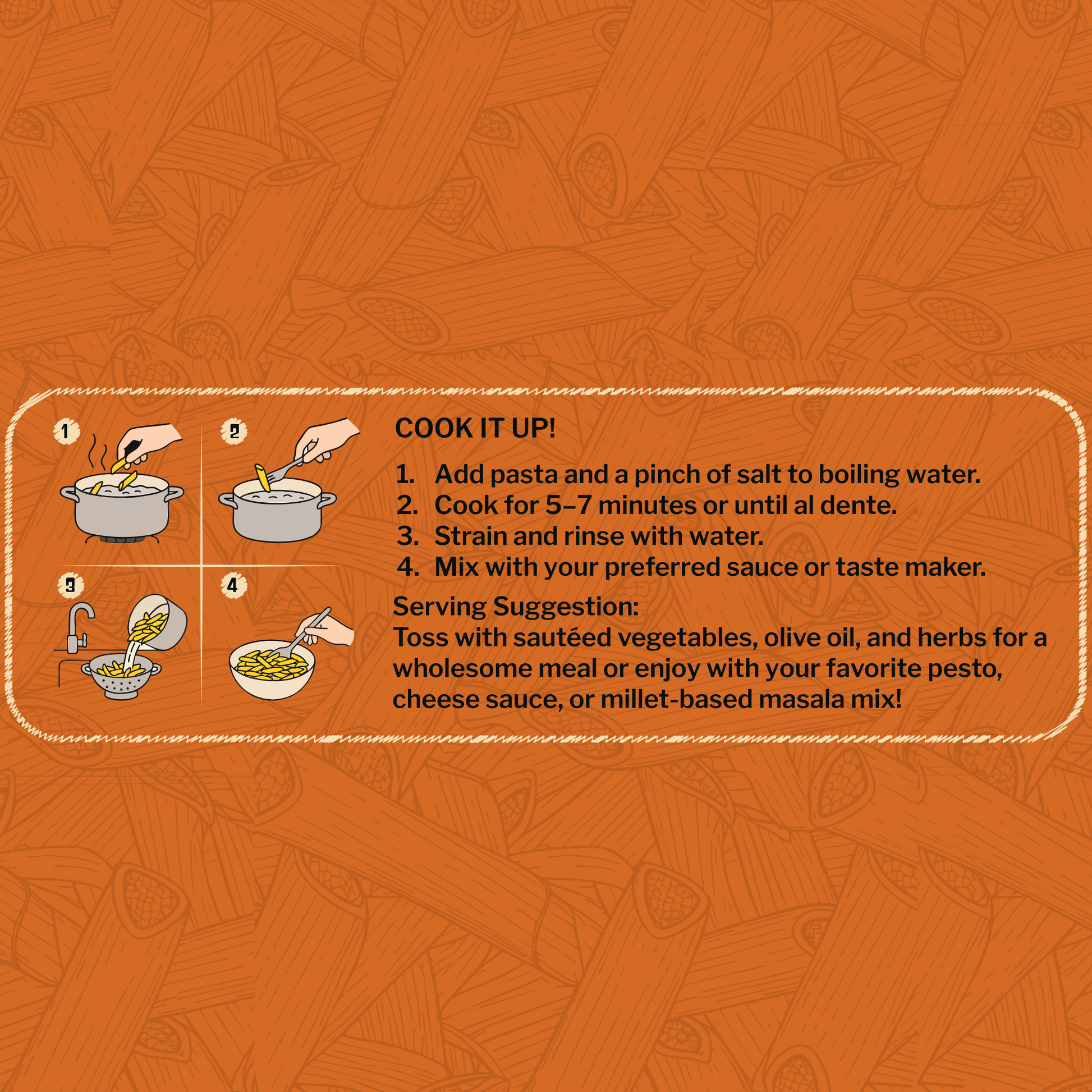 Made with 100% Ragi (Finger Millet), this pasta delivers a perfect balance of taste, nutrition, and clean ingredients, giving you a guilt-free way to enjoy your favorite meal.